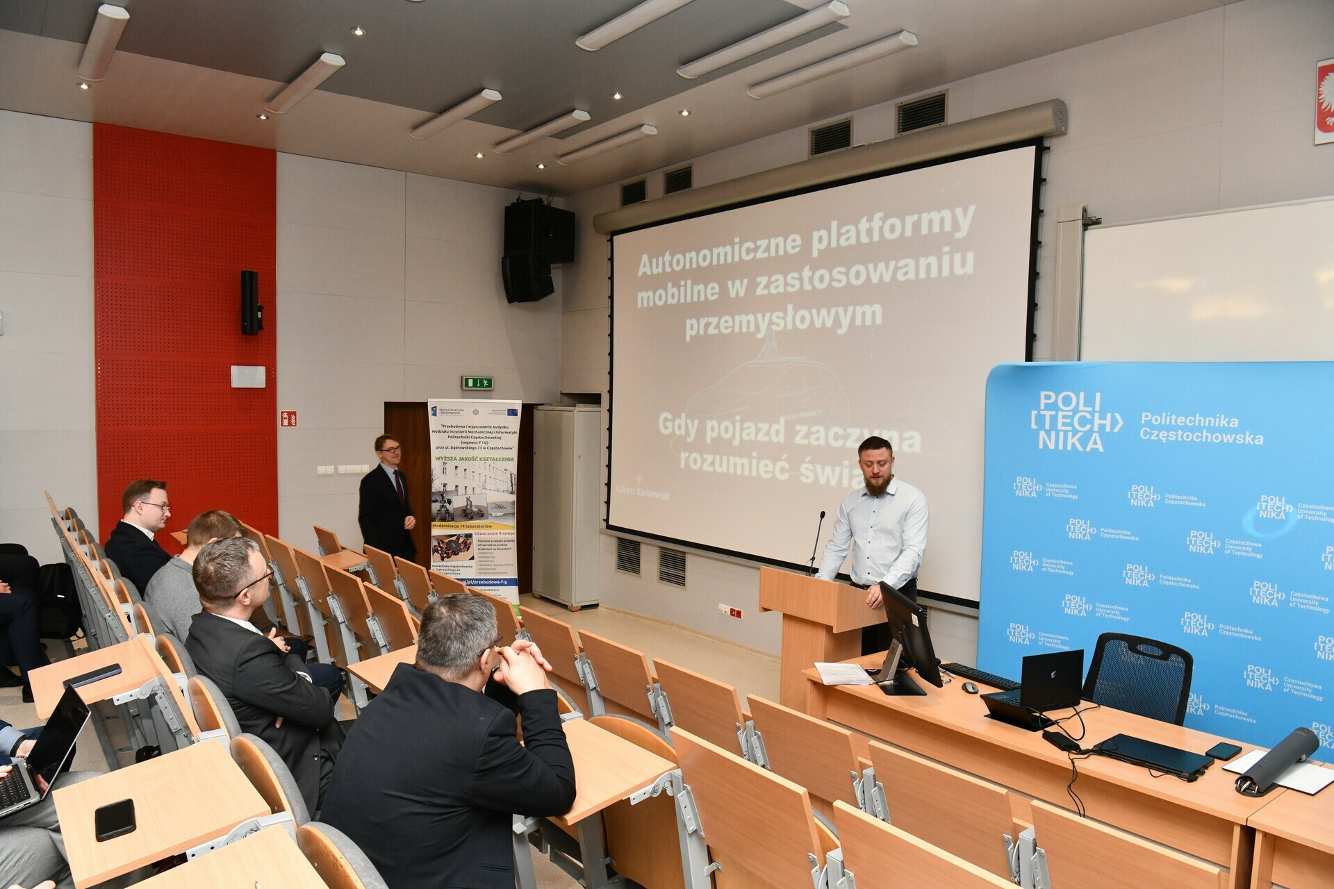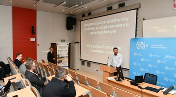 - Autonomiczne platformy mobilne w zastosowaniach przemysłowych – dr inż. Łukasz Karbowiak z Katedry Informatyki, reprezentujący także ZF Automotive Systems Poland, omówił praktyczne wdrożenia mobilnych systemów autonomicznych w środowiskach miejskich i produkcyjnych.