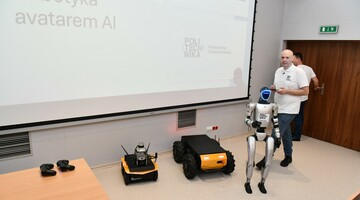 - Możliwości i ograniczenia robotów humanoidalnych – dr inż. Piotr Dobosz z Katedry Sztucznej Inteligencji przedstawił aktualne bariery technologiczne i potencjał humanoidalnych systemów robotycznych we współpracy człowiek–maszyna.