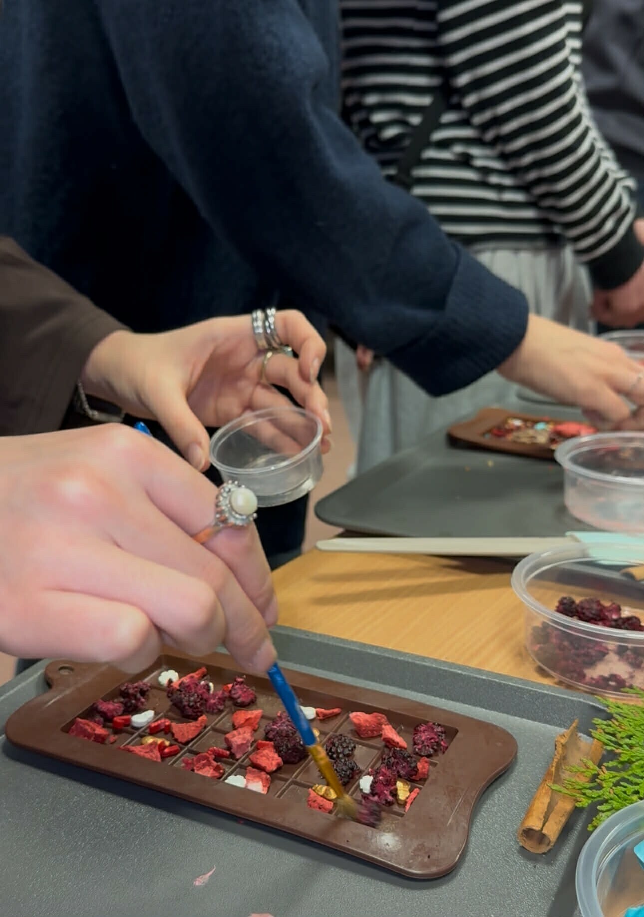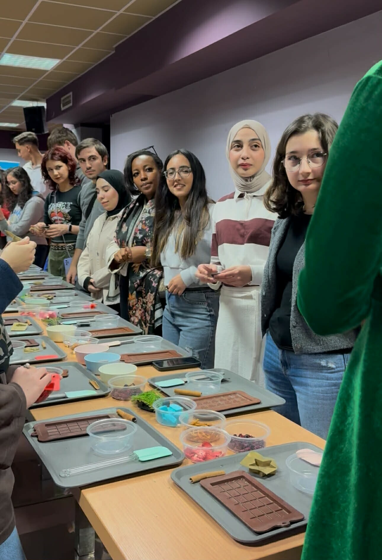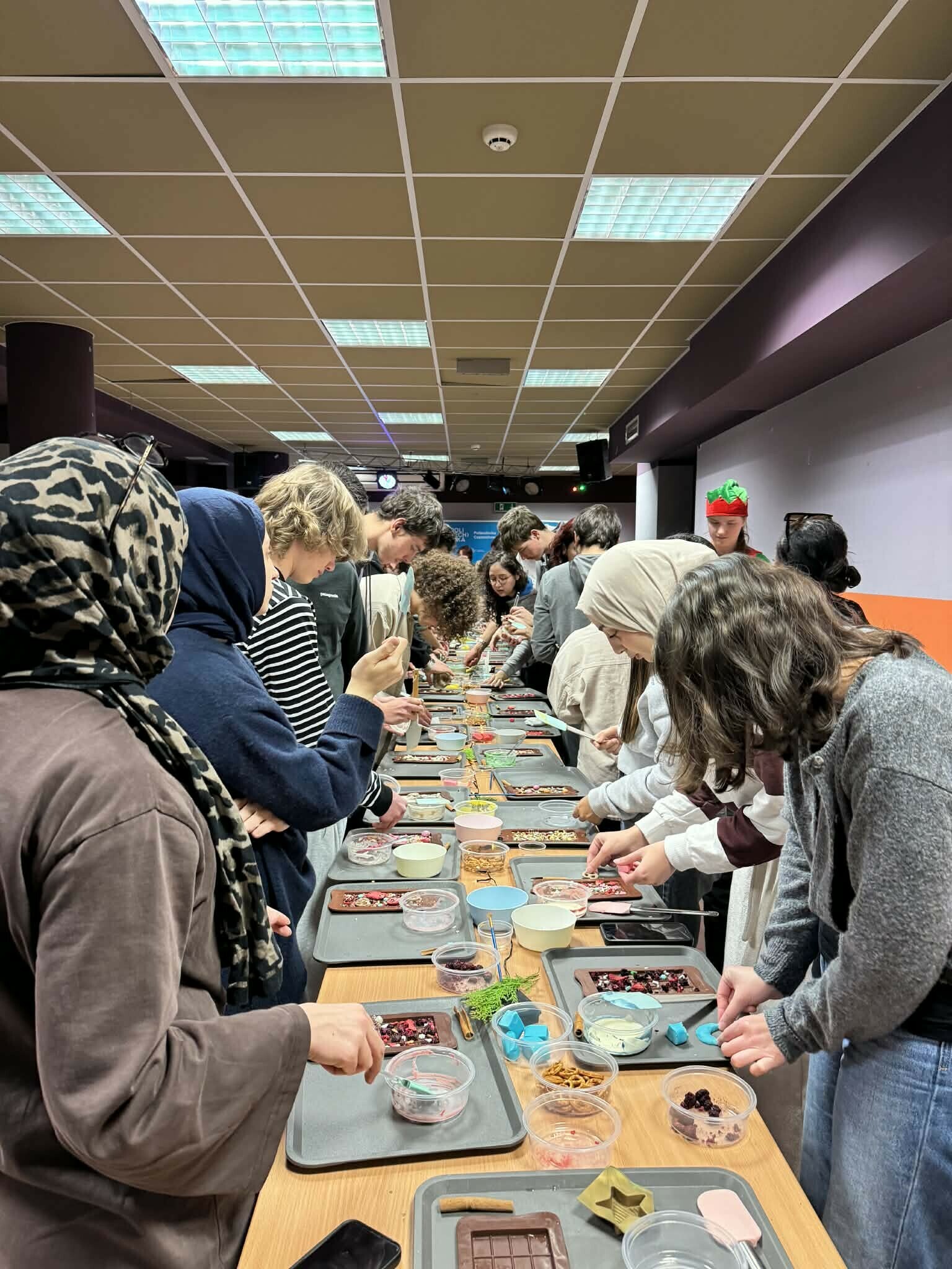 On December 12, 2025, the International Students Office held Chocolate Workshops. During the event, participants had the opportunity to create their own original chocolate bars. They had milk and white chocolate at their disposal, as well as a wide selection of tasty toppings, which allowed them to create unique chocolate compositions.