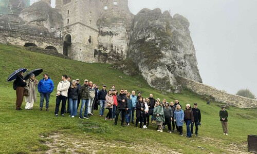 Ważnym elementem programu były wyjazdy studyjne, które pozwoliły uczestnikom na połączenie teorii z praktyką. Wizyta w Zamku Ogrodzieniec stanowiła przykład udanego zagospodarowania przestrzeni historycznej z poszanowaniem dziedzictwa kulturowego, natomiast zwiedzanie CMC Poland Sp. z o.o. w Zawierciu, nowoczesnego zakładu produkującego wyroby stalowe dla budownictwa, umożliwiło poznanie zaawansowanych procesów technologicznych w przemyśle materiałów budowlanych.