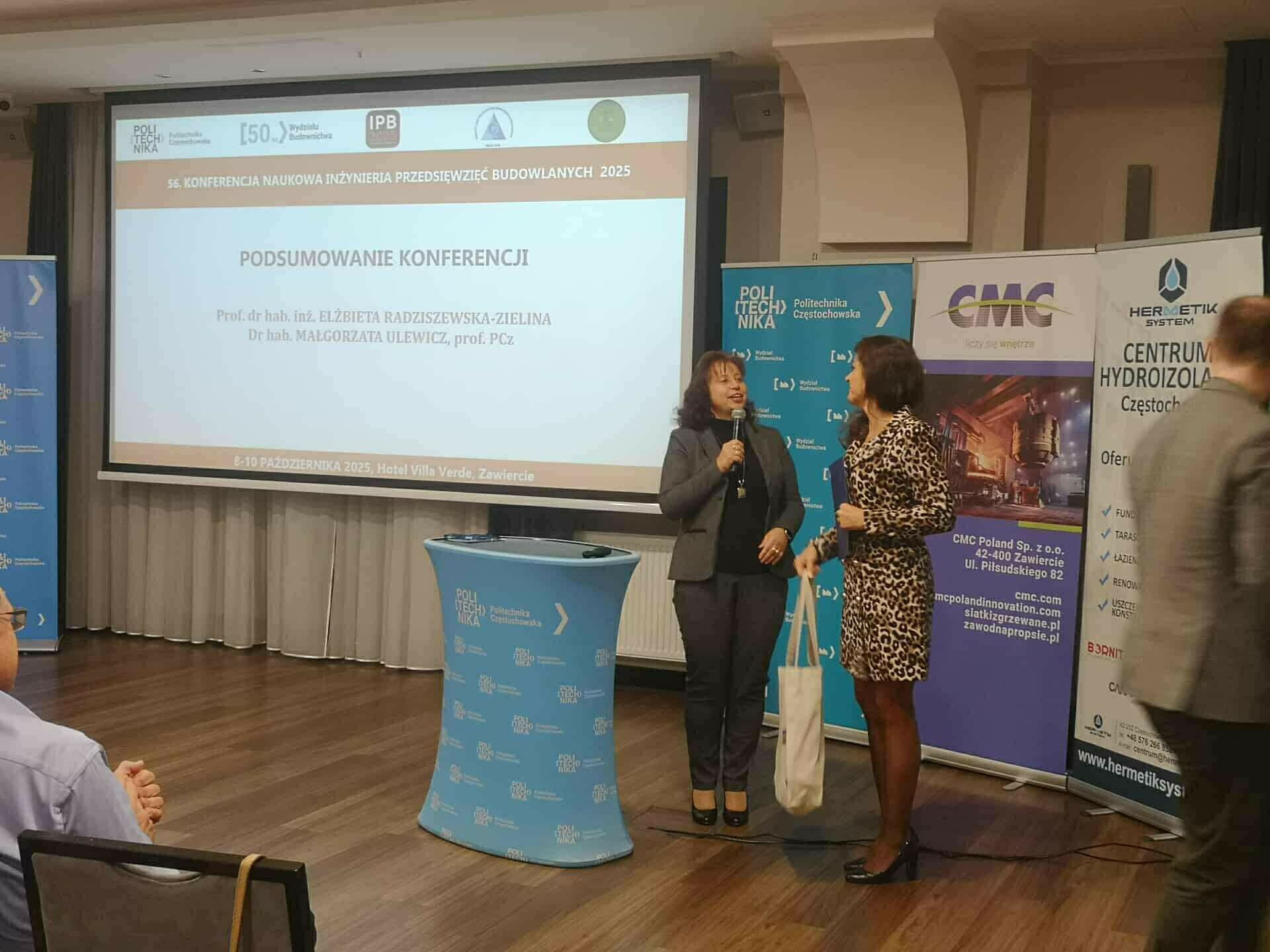 W dniach 8–10 października 2025 roku w Zawierciu odbyła się 56. Ogólnopolska Konferencja Naukowa „Inżynieria Przedsięwzięć Budowlanych – IPB 2025”, organizowana przez Katedrę Inżynierii Procesów Budowlanych Wydziału Budownictwa Politechniki Częstochowskiej oraz Stowarzyszenie Menedżerów Jakości i Produkcji.
