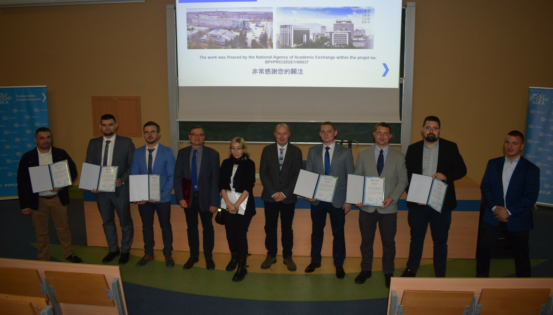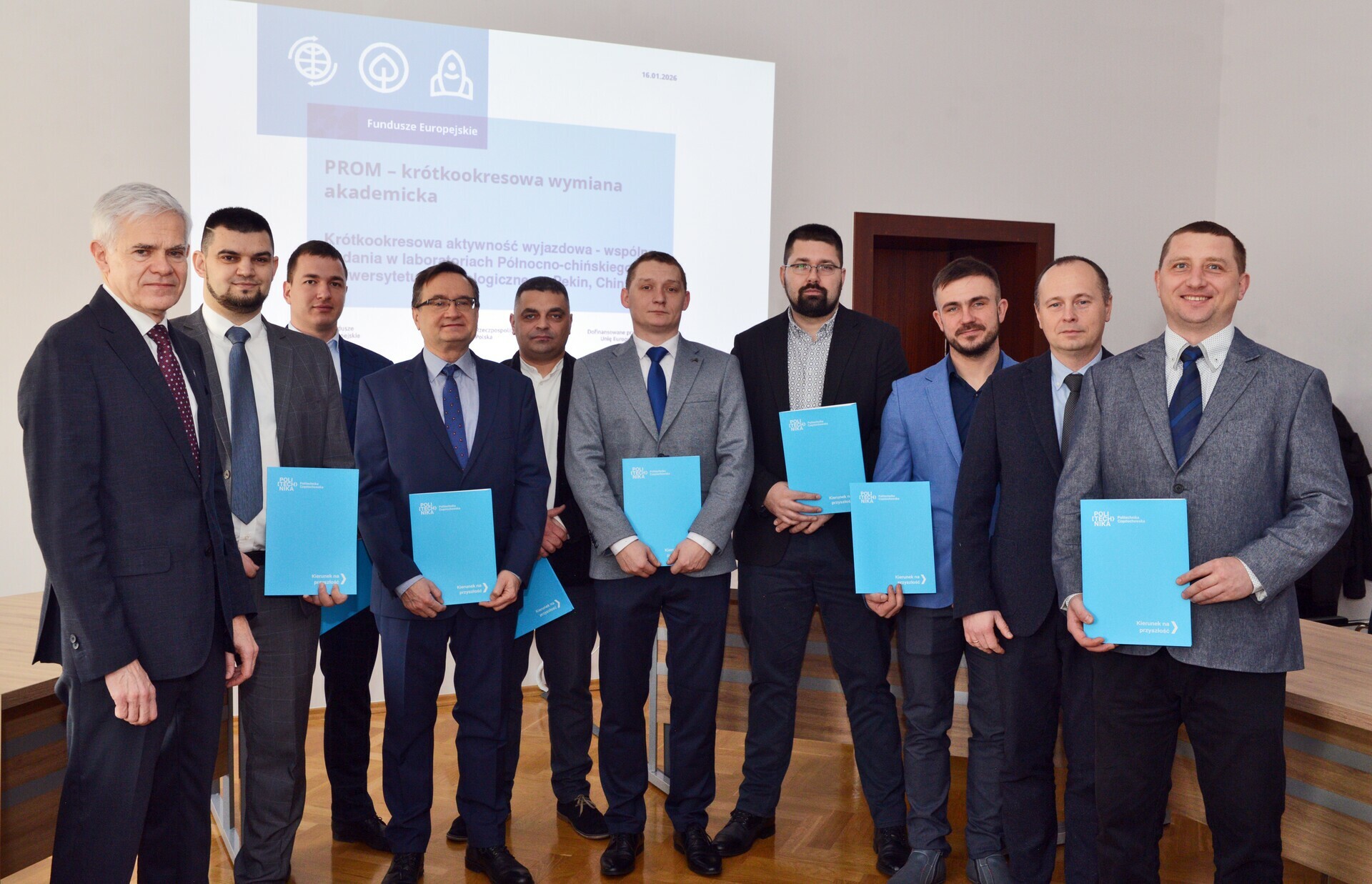 W dniu 16.01.2026 r. odbyła się uroczystość wręczenia certyfikatów pierwszym uczestnikom projektu PROM. W ramach mobilności wyjazdowej zrealizowano w okresie 24.11 do 06.12.2025 r. wyjazd do Północno-chińskiego Uniwersytetu Technologicznego. Grupę uczestników reprezentowali studenci kierunków: Metalurgia i Technologie wyrobów metalowych oraz pracownik Katedry Metalurgii i Technologii Metali.