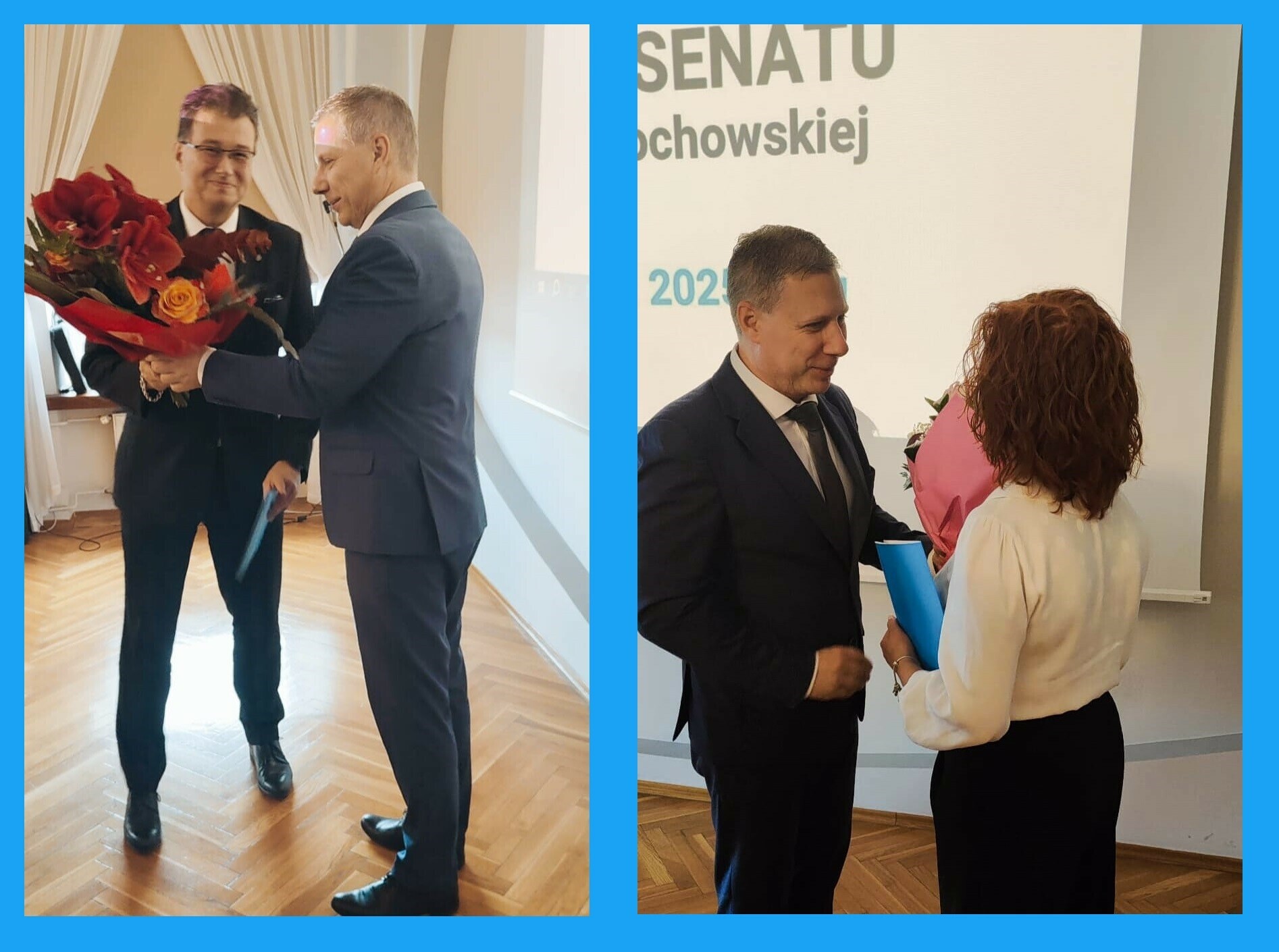 The Senate of the Częstochowa University of Technology welcomed Prof. Elżbieta Gawrońska and Prof. Robert Ulewicz as new full professors. Rector Marek Warzecha, PhD DSc Assoc. Prof, congratulated them on their scientific and academic achievements, emphasizing their contribution to the University’s growth and prestige.