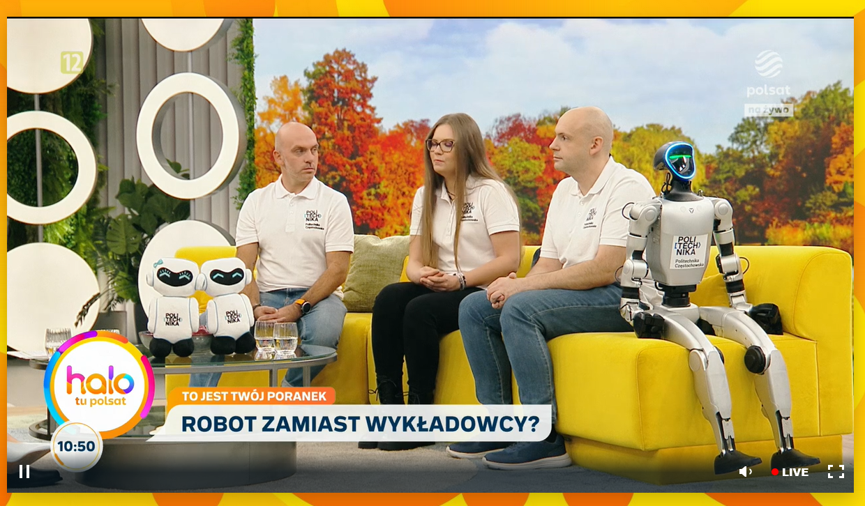 A Robot from Czestochowa University of Technology recently appeared on the Polish morning show “halo tu Polsat”, where it greeted viewers with a cheerful “halo” and stole the spotlight. This unique guest, used as a teaching tool by students of the Faculty of Computer Science and Artificial Intelligence, shows how robotics is becoming an essential part of modern education.